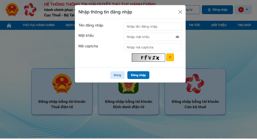 Bước 1: Bạn chọn mục Đăng nhập, hệ thống hiển thị danh sách các hình thức đăng nhập, bạn chọn hình thức Đăng nhập bằng tài khoản thuế điện tử và chọn phân hệ Doanh nghiệp. Lưu ý dùng tài khoản quản lý trên hệ thống thuế điện tử để đăng nhập.